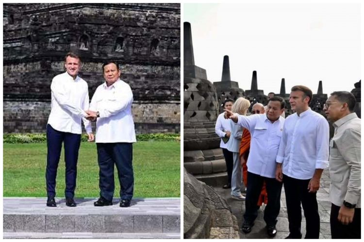 Viral Presiden Macron sentuh patung Budha saat naik ke puncak Candi Borobudur